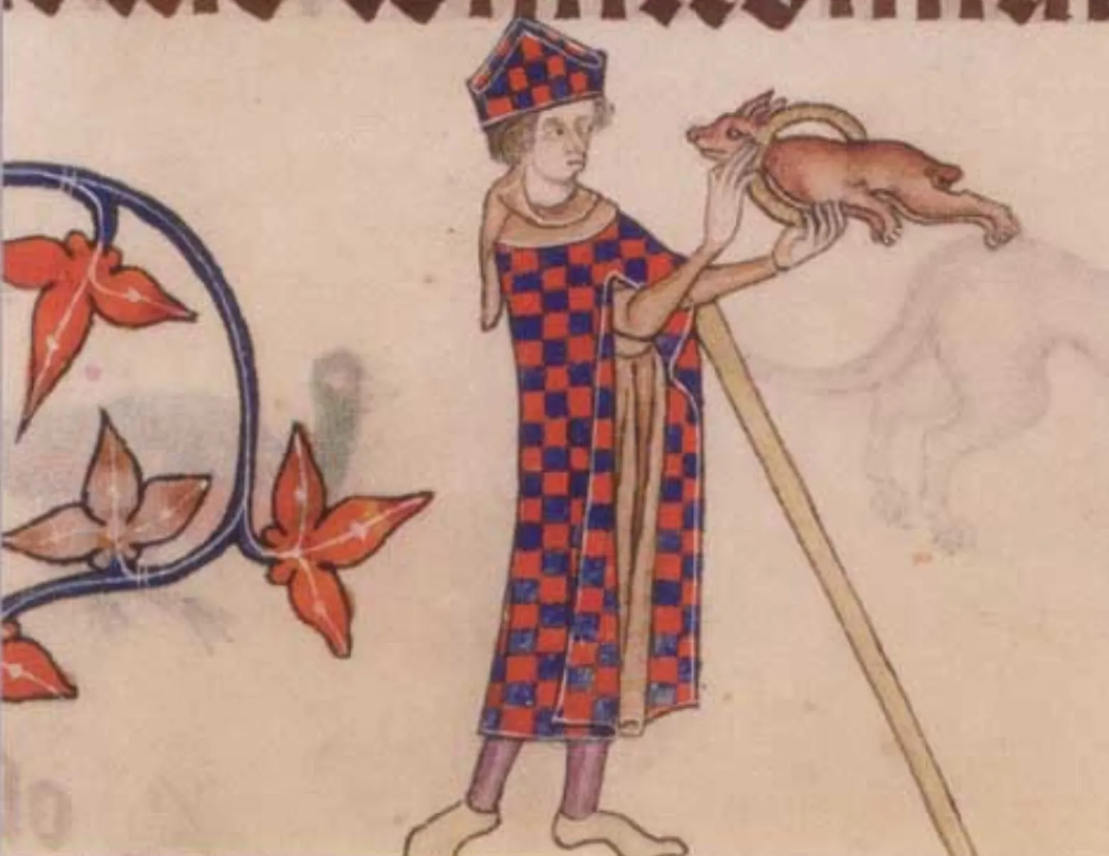 Ein als Bischof verkleideter Gaukler, lässeinen kleinen Hund durch einen Reifen springen, Luttrell Psalter,um 1330-1340,Add. Ms. 42130, fol. 84r ← Vorheriges Nächstes →
