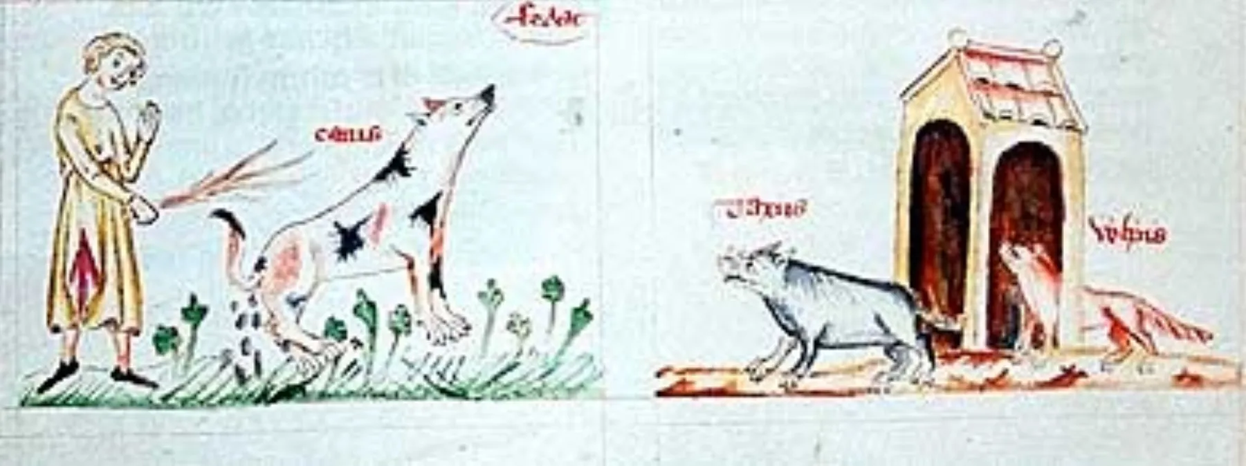 Kolorierte Federzeichnung aus Österreich, um 1350. Quelle Lilienfeld, Stiftsbibliothek, cod. 151. fol. 37v ← Vorheriges Nächstes →