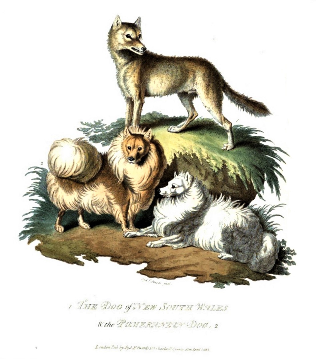 The Dog of New South Wales & the Pomeranian Dog, aus ,,Cynographia Britannica”, Sydenham Edwards, 1800. ← Vorheriges Nächstes → The Dog of New South Wales & the Pomeranian Dog, (inkl. Bildtitel des Buches), aus ,,Cynographia Britannica”, Sydenham Edwards, 1800.